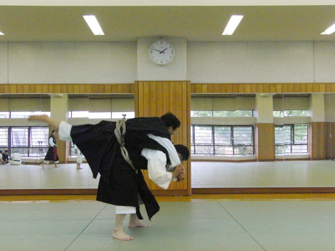 と出稽古に来ていただきました。 ずいぶん久しぶりでしたが、とても 勉強になりました。 今回は柔法のみということで、居捕 の送小手と逆小手、木葉返と木葉送 をご指導いただきました。 居捕では足(膝)を捌かない掛け方、 送小手は天秤からの後腕固、逆小手 も 類の投げ方+変化に固技などを教わ りました。 知っている(やっている)つもりで 分かっていないことが多いです。 教え方も上手いですし、やっぱり 武●講師になったらいかがでしょうか。 でも、ずいぶん手加減をしていただ いたと思いますが、今朝は両手首が 痛いです(笑)
