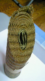 今回は初めてなので畳おもて半畳分を 一晩水につけたものだそうです。 少し細めで直径7~8cmくらいでした。 先生が10数本作ってくれて、一人3~4本 斬らせていただきました。 立てたら、こんな感じです。 一本の巻藁を足を差し換えながら、袈裟、 逆袈裟、袈裟、逆袈裟と4回斬ります。 通常の物打ちよりもやや深いところで斬る のがいいそうです。 真剣だと緊張するので、つい間合いが遠め になるみたいです。 さて、結果は・・・、 こんなに見事に斬れました。 先生が、とても斬れる刀を用意して くれたおかげです。 とにかく力も要らないし、恐ろしく 簡単に斬れました。 普段、いかに力を入れているのか と思いましたね。 いい経験をさせていただきました。